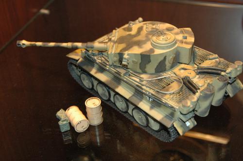 有感于本网站上展示的漂亮模型,故自己试动手制作本人喜欢的虎式坦克,选择了组合较简易的爱德美,迷彩参考了 Mr.Restayn 写的《Inside the Tiger I: Anatomy of a Cat》一书中虎I502迷彩。进展比较顺利,但喷迷彩时,不知是否是用水性漆(田宫)缘故,喷笔间断有水喷出,故补漆是改为手涂,最后做简单的洗渍和干扫。请各位高手多指教。