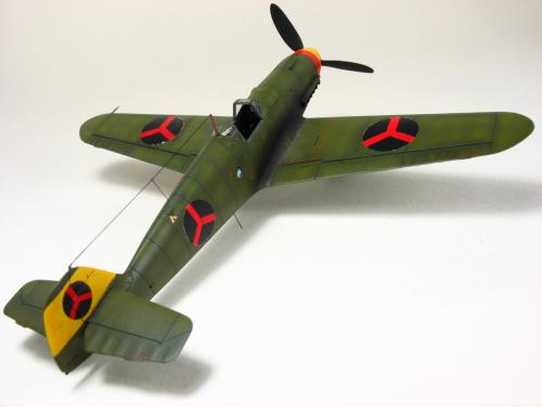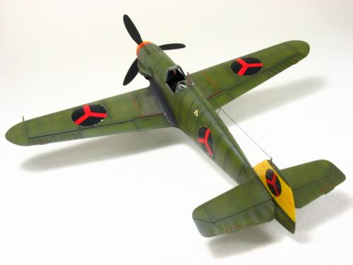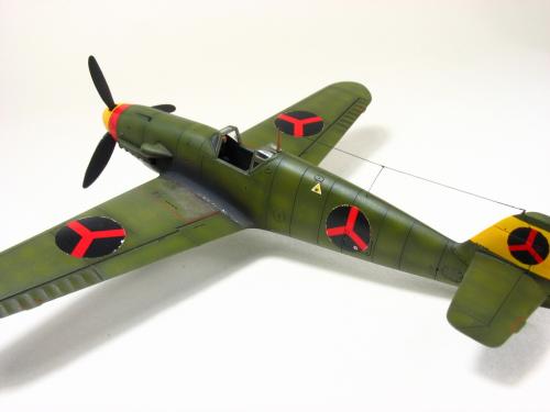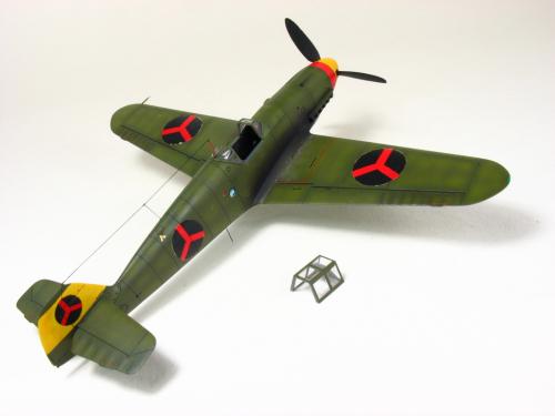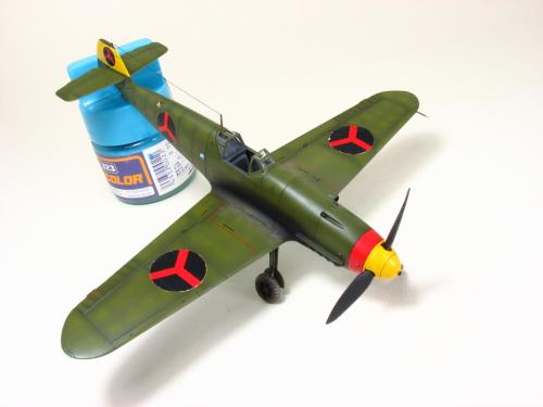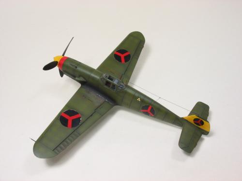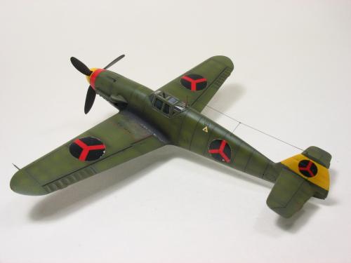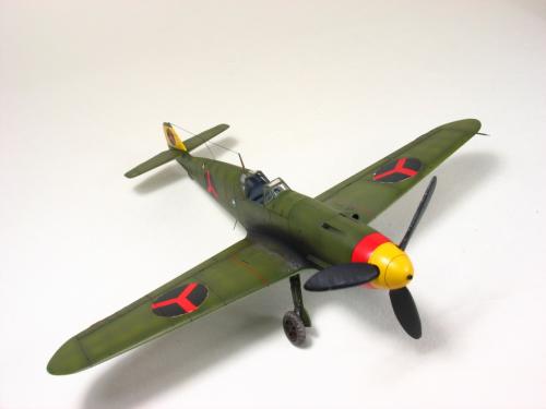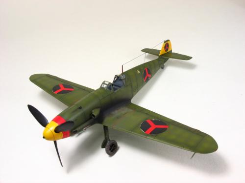 Bf-109 G-2 博尔多利亚(Borduria)空军涂装,题材取自丁丁历险记<奥卡托王的权杖>.在漫画中博尔多利亚是一个位于巴尔干半岛的国家,意图并吞邻国西尔达维亚(Syldavia). 漫画影射了二战初期的巴尔干局势,其中博尔多利亚和西尔达维亚分别是指保加利亚(Bulgaria)和塞尔维亚(Serbia). 现实中的保加利亚在二战中属于轴心国一方,大量引进德国装备,其中就包括有Bf 109E和G型.而漫画中出现的这架博尔多利亚空军的Bf 109的涂装具有典型的德国与保加利亚的混合风格,样式介于E和G型之间.漫画虽然发表于1939年但还是选取了保加利亚装备过的G-2型进行制作. 套件 Academy Me109 G-6改成G-2,A的套件错误多多,大量改造后按照漫画出现的形式遮盖喷涂成博尔多利亚空军涂装 总结:将经典的漫画题材与现实联系起来,尝试以模型的形式加以表现,给已经多少有点枯燥的模型制作增加一些新的乐趣和内涵