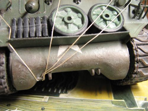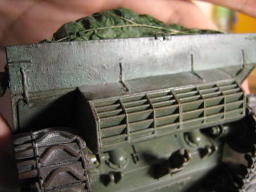 车体:意大利6389 炮塔:爱德美13203 行动系统:龙6083、6048 少数追加的细小部件:龙3529、6048、6121、6255等,田35190 金属炮管:南京老熊制造,鱼类送的礼物。 PE:自制 全丙稀颜料手涂。