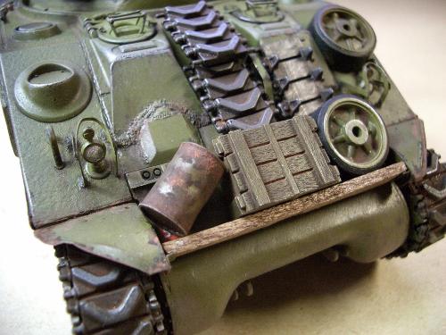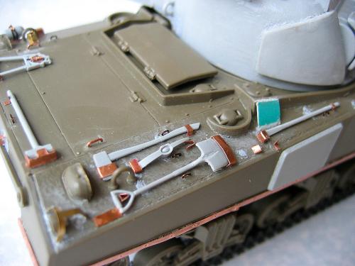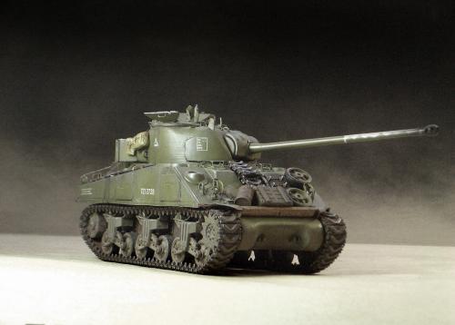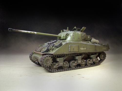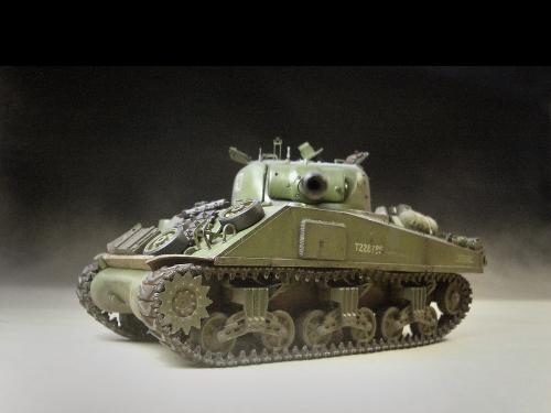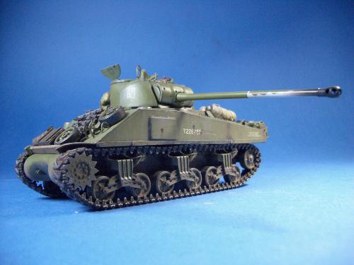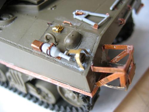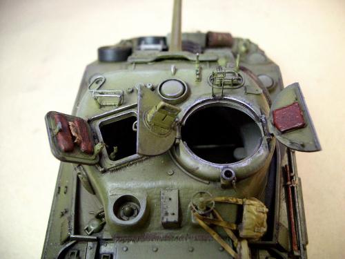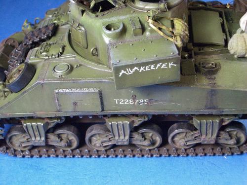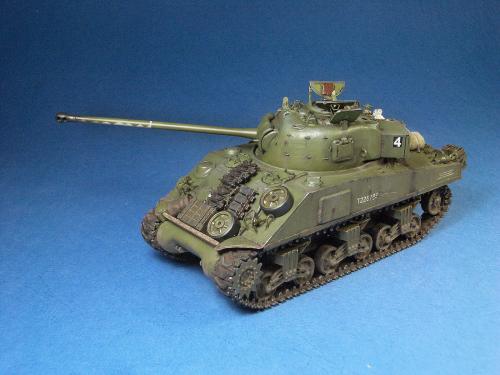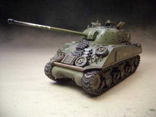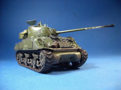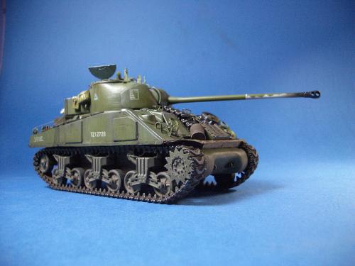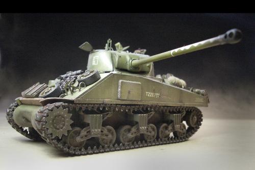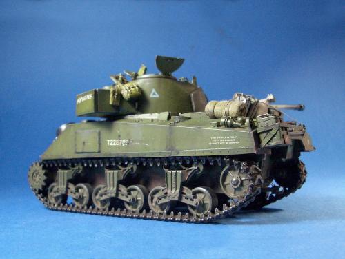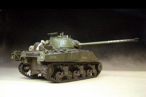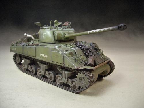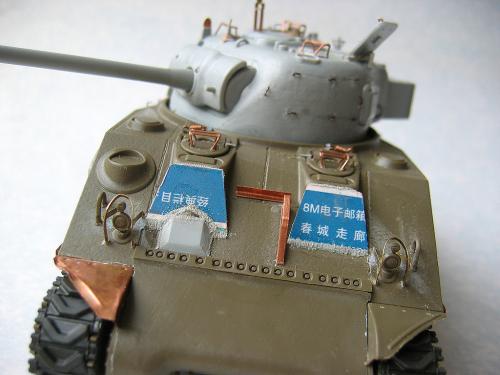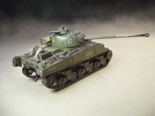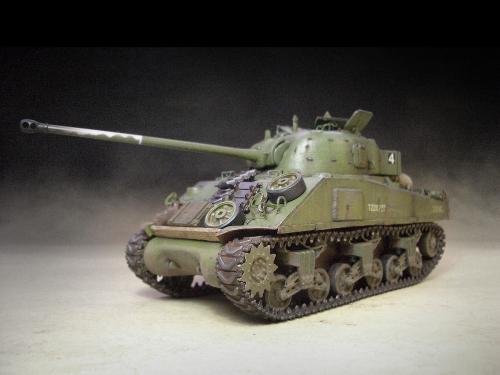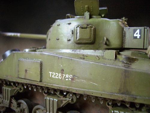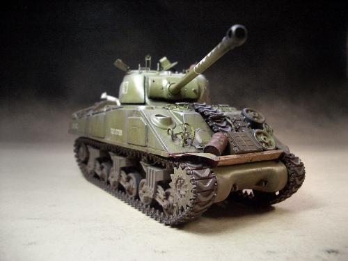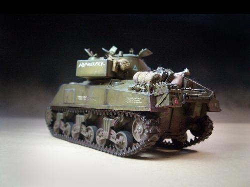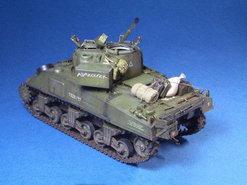 1\35的盟军题材里,好像还没有出现过萤火虫IC型模型,于是决定自己动手改造一辆,套件使用龙的FIERFLY VC型及田的M4初期型。改造其实很简单,就是用龙的头加上田身子,再做一些局部的调整就ok。细节方面用铜片及铜丝自制PE,由于M4的车体比M4A4的短些,模型完成后感觉样子有点卡通,于是决定用铜片自制一个油桶架于后部,以延伸视觉,炮塔上的舱盖内实车有皮制护垫,在多次着色不理想的困扰下索性就用真皮削薄后粘,效果及真实性非一般着色能比拟。接下来就是上漆做旧,最后再根据自己的喜好细化一下,堆积杂物是盟军车辆的一大特色,这次也不列外,前后放满各式东西。不过自己认为这些东西的存在应该是锦上添花,而不应喧宾夺主,所以在摆放要为模型起到一个扬长补短的作用。 后在论坛发图后进过高人指点,发现了几个致命错误,于是赶紧悔过改正,并且重拍发于下图,希望各位考观打考证分时以下蓝底图为准,亡羊补牢为时不晚嘛:)