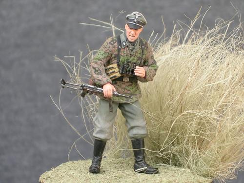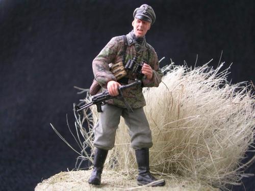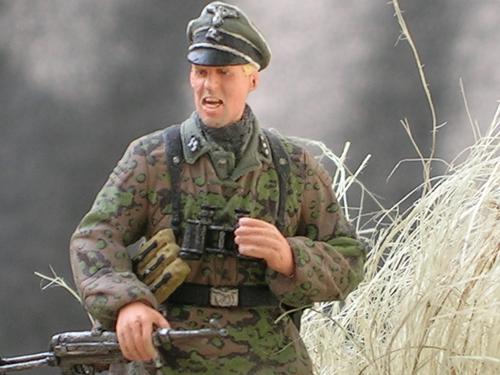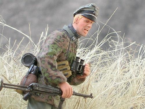 迷彩和脸是非常出色的亮点,充分体现了作者的功底. 衣服的消光做得非常成功.值得提倡的是,这种做法为ZHANGLIU独创,很有意义. 场景没有作过多特别处理,有些仓促,但显得洒脱. 不足的地方在于,小零件和工具的处理略显毛糙.希望以后有所提高. 感谢你参加比赛!