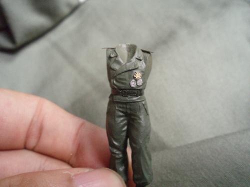 人物套材为田宫35202内的坦克兵,配用了狮鸣 lam028 lam007两套蚀刻片内的军衔\勋章.由于是坦克模型内配的兵人,开模稍粗合模线明显,在经历仔细的打磨后才能开始上色.