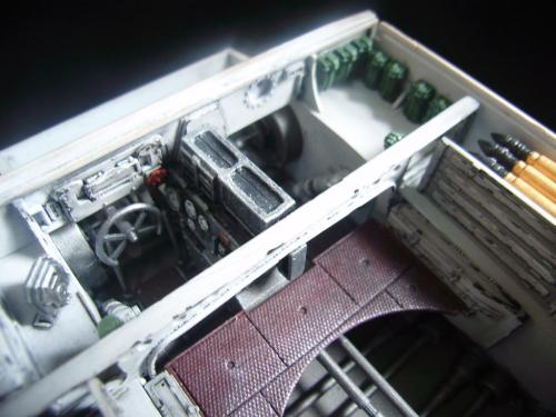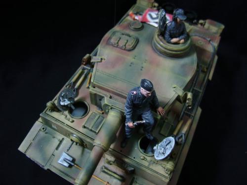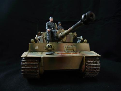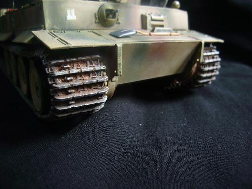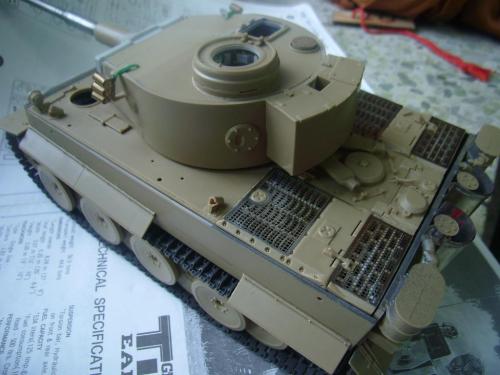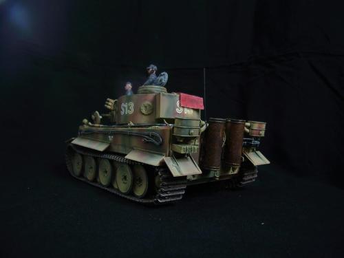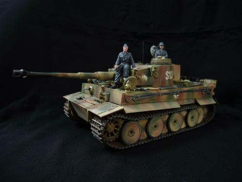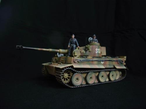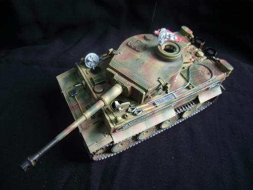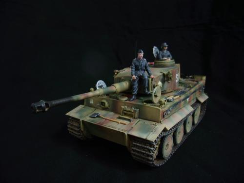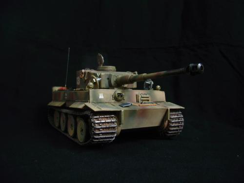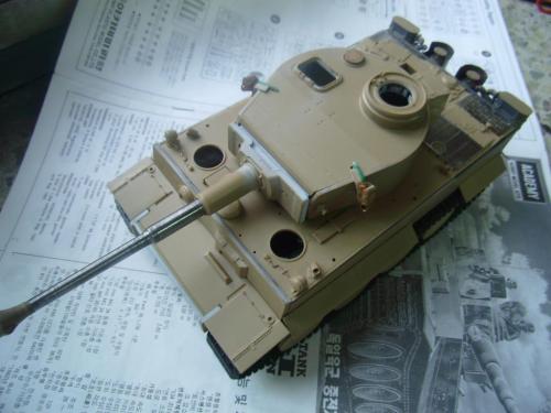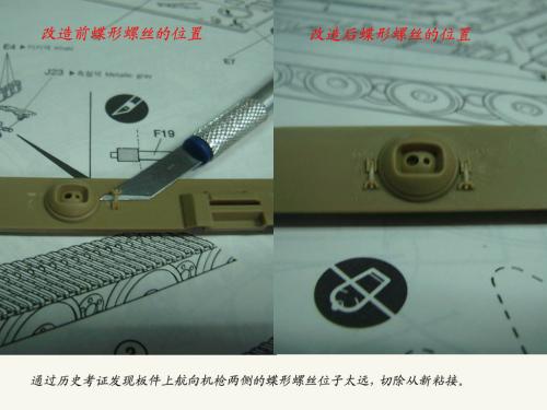 名称:鹰扬虎视(名字注解:形容象鹰那样飞翔,如虎一般雄视。形容十分威武。) 比例:1/35 板件:爱德美 P E:沃雅+自制 兵人:港龙 履带:手钻 颜料:模王 背景:1941年5月26日,希特勒要求PORSHCE(简称POR.)和HENSCHEL(简称HEN.)提供重型坦克的设计方案。 1942年4月20日——希特勒生日,在东普鲁士的狼穴,这两辆样车都出现在了他的面前。42年7月, 在BERKA的坦克学校,两辆坦克都开始了进一步的测试。在测试期间,POR.的样车被淘汰,而HEN.的 样车却非常成功。同月,HEN.的VK4501(H)定型,命名为"虎 I",并且开始批量生产。 在1942年8 月29日,“虎I”第一次出现在列宁格勒的502重型坦克团第一连。本人制作的是隶属LSSAH的SS装甲 团之战术编号为S13的虎式坦克。这是早期型老虎的后期生产型,带有S雷发射器,改进了的边裙。炮 塔是典型的不带有填装手潜望镜,两侧也没有备用履带支架的早期型炮塔。1943年夏天进行的库尔斯 克战役,是战争史上迄今为止最大规模的坦克战。苏德双方逐次投入交战的兵力有400万余人、6万9千 余门火炮和追击炮、l万3千余辆坦克和自行火炮、近1万2千架作战飞机。德军统帅部在该会战中投入 100多个师,占苏德战场上师的总数的43%以上。苏军在这次会战中歼敌30个师,德军损失官兵约50 万人,坦克l500辆,火炮3000门,飞机3700余架。参加库尔斯克会战的20个坦克师和摩托化师,7个 师被歼,其余的也遭到重大损失。 库尔斯克会战对1943年苏德战场上战事的进程和结局有着重大影响。 会战开始后不久苏军的反攻发展为总的战略进攻这一战略进攻。 制作:素组比较麻烦,因为爱德美的图纸有很多错误,考证了大量的历史资料发现内部弹药葙是一排4枚,爱 的板件开模是3枚,这个错误在爱的板件上不太好改,所以就直做了,外部错误比如航向机枪两边的蝶 形螺栓,实车是紧靠航向机枪的,爱的板件开模离的很远,制作的时候切除从新粘接到位,在下面的图 片中可以看到。在上色方面也很繁琐,因为是带内构的虎,一些内构零件需要先上色才能组装。在完成 了所有内部结构以后对车体进行上色,涂装采用三色迷彩。在旧化方面还是老一套,用油画颜料加ZIPPO 油全车渍洗,干后用油画色干扫,最后点掉漆、流锈、粉彩修饰。