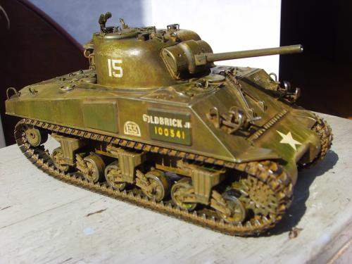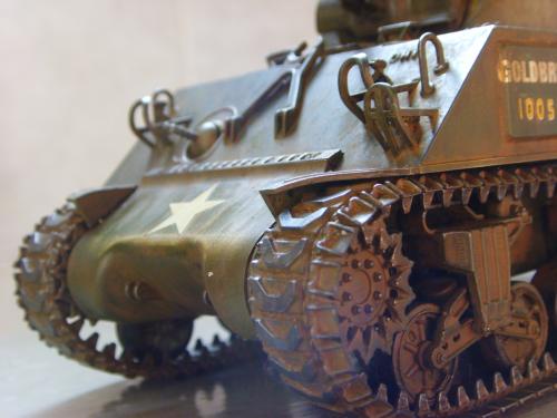 爱德美的套件,细节部分由钢丝作为辅料等。难点在于行走部分与履带的旧化以及主炮塔的旧化。底漆使用黄色手涂再覆盖橄榄绿+黑色喷漆,经酒精反复擦拭模拟真实露出底色。履带经多次旧化与干扫,使用铅笔模拟金属颜色。 因为在阳光下拍摄所以较亮。