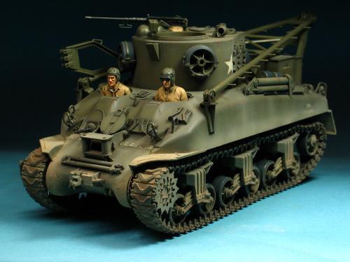 因为要运输,所以车体前部舱盖并未粘和,评委也就当两个小人露个脸吧,加入田宫两名坦克兵后,整体看起来更舒服一些,色彩上也有了深浅搭配。