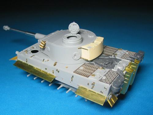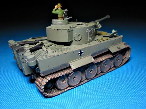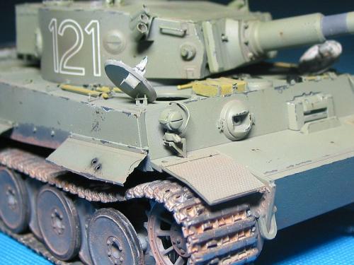 威龙最近出的新版虎I坦克(初期型,晚期型)让这个模型界已经经典的话题友焕发了新的生机。 CYBER-HOBBY是威龙棋下的新品牌,在国内知道的人也许还不太多。他出的坦克模型都是延续了威龙新品的高质量,但是又与威龙的产品不雷同,而且所有产品都是一次性生产,不会再版。大约2年前出了一款非洲军虎I型坦克,白色包装盒(CYBER-HOBBY限量版都是白色包装),材料集合了威龙初期虎和晚期虎的套材,以及部分新零件。现在市场上已经几乎找不到该套材,偶尔再EBAY.COM上可以找到,价格涨到150美金以上(原价50美金)。 言归正传,我参照收藏的CYBER-HOBBY虎I制作了这辆非洲军绿虎。使用的材料如下: 6286-威龙初期虎 PE 35061-沃雅配田宫非洲军虎I蚀刻片 35A11-ABER非洲军裙板及排气管保护罩 FM初期虎I金属履带 自制树脂储物箱 树脂兵人 部分田宫零件