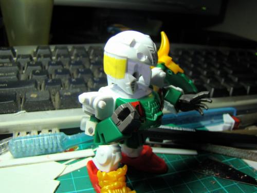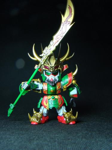 使用万代的三国风云 SD关羽高达,君士油性漆上色.改造手关节,腿关节,腰部关节,各角加长磨尖。庶盖起来比较麻烦,武者系的老毛病了。