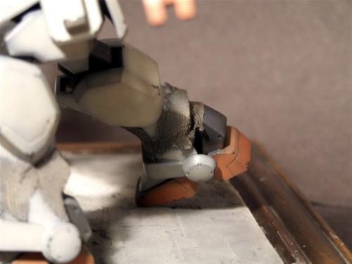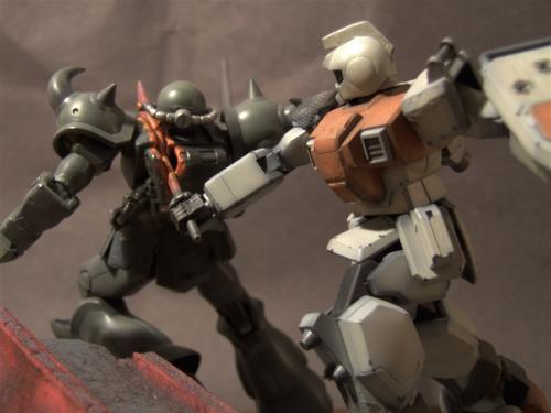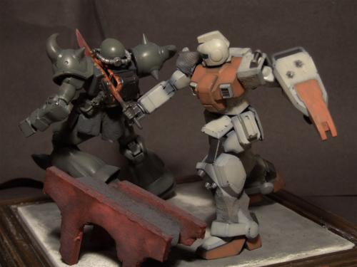 场景的整体构图很好,老虎被吉姆的光剑切入的创口对与1/144的比例来说也是细致的,机体的细节也很丰富.但美中不足是地台细节不够,地面处理较草率,希望能看到更精彩的后续场景作. |