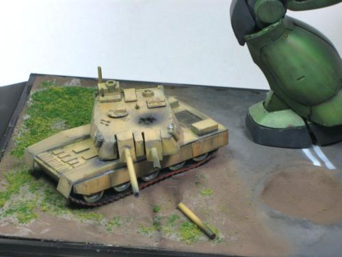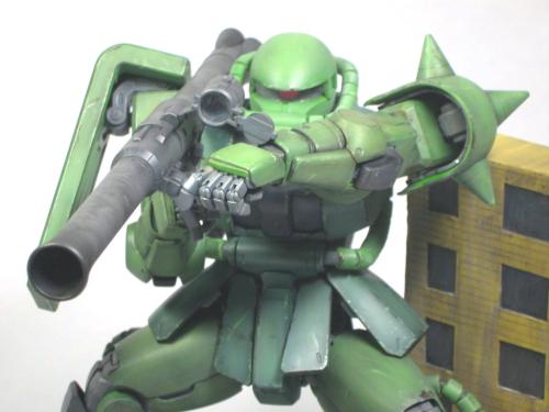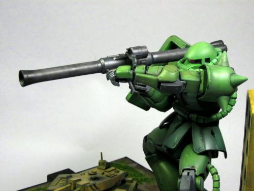 扎古II的细节处理很好,旧化比较得当,战车的细节补充仍需加强,地面以及房屋对于这个尺寸来说显得有些单调, |