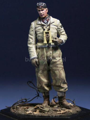 此套件为1/35的alpine阿尔派35036树脂兵人。 此次制作重在色调的处理,并配地台使之更为整体(钢丝网为自制,弹夹包为TANK的树脂产品)。