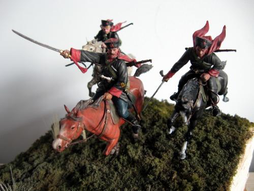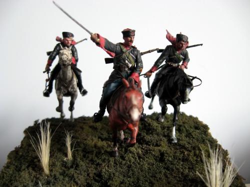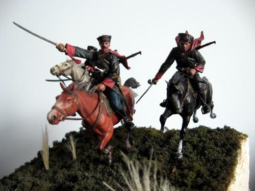 原本打算做龙的二代兵,后来发现场景构思有问题,搁置很长时间后发现离最后日期只有一个多星期了,不得不临时改成了红星的哥萨克骑兵,时间很紧任务重,不足之处望大家谅解。由于不存在盗版问题,就没拍封面和版件。另外改造方面只是增加了马的缰绳和挖深了兵人的袖口,做了一个小地台。最后,我想说很感谢举办这样的比赛,不然我这盒模型不知要等到何年何月才能动工完成呢~
