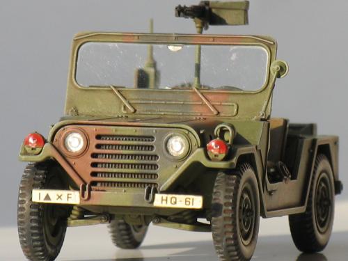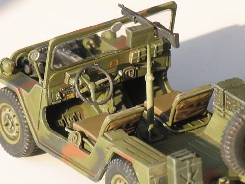 爱德美的新版M151A2,直做无改造,(不知道钻枪管和排气管算不算.)细节感觉还是可以的,比田的同类产品要好,毕竟是新开模的嘛,不过组合度不是很好,推出孔比较多,那水贴就~~~地球人都知道! 第一次参加比赛哈~~~还有很多不懂,望多多指教!