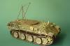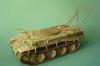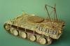 本次制作使用的是 威龙6160 豹式D型 ICM 35341 豹式坦克抢修车初期型 沃雅 1/35 德豹式坦克D/A型防爆网 两盒模型凑成的一辆中期型豹式D维修坦克 此种维修坦克在库尔斯克会战后到1944年初期在德军中使用,后来逐步被豹A底盘的抢修坦克替代. 在制作中的主要难点是上主舱盖木色的处理和资料的查找,根据现存资料,选择了早期型和中期型交接,还没有改装前舱盖的版本,木色使用田宫皮肤色打底,用油画棕色渍洗和干扫,模仿木制表面;用KMY的1mm铁环替代了吊钩,用沃雅改件加装防爆网,使用田宫漆喷迷彩并用MIG土做粉处理,感觉本次喷迷彩过淡且密度大了一些,在以后的作品中需做进一步的调整.