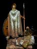 这款凯尔特人是小弟买的第一个金属兵,也是做的第二个金属兵,属于毕加索的绝版产品.版件还是一如既往的精致.制作中做了改造,脸部左侧用AB补土塑造了眼罩,左手腕部用纱布塑造了缠布,右手握矛角度做了调整,觉得官方笔直的角度无法表现其气势,稍稍呆板了点.整体用AV和丙稀上底色,油画颜料做效果,MIG土作粉尘.用石膏做了地台,加上平时搜集的杂草