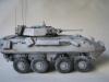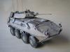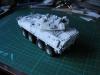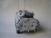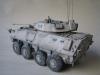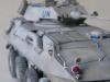 我这次使用的是号手的LAV25剪刀鱼套件,用漆包线加固了炮塔后拦网,用针灸针替换了前天线,其他直做。 全白涂装难度大而且经验不足,我是全车整体喷黑,再用消光白薄喷全车,再利用漆层厚度来突出高光和立体感,完成后用黑色和棕色法郎漆滋洗全车,干后用白色珐琅漆干扫车体细节。 由于是现代战车,所以轻微点了少量掉漆,轮胎用AFV的城市灰天然土色干扫,再用君士的消光漆固定。全车再用沙黄土色和白灰色土稀释盖喷,最后消光完成。