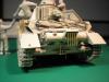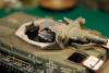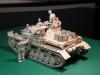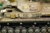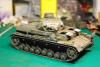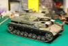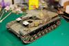 在此比赛开始前,已经开始素组,本来打算做黄绿斜条纹迷彩涂装的,更能突出其C型的特点,个人人为是C型中最好看的涂装;但是为了迎合比赛,改为德国灰单色涂装。由于是单色风暴,笔者认为比的就是色差,所以在主色的喷涂分色上花了大量时间,在产生阴影的部位预制黑色阴影,之后喷涂田宫水性漆,由德国灰+田灰+浅灰+深灰调制而成,现在看来颜色不太准,偏浅了,也可能是高光加白太多了,喷好主色后,在原色中加入少量的黄色和白色,分2个层次喷高光,每个层次加入的黄和白呈阶梯式递增。主色干后,上水贴,喷郡士光油,用来做旧化前的保护层,之后,滤镜,渍洗,渗线,履带尘土。