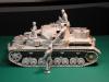 龙6291,几乎是直做无改,唯一的改动是在前大灯,用了反光性质好的材料在灯内部,可以增加大灯的整体效果。采用龙本身自带的蚀刻片。个人认为这样的板件已经足够细了,总零件超过1000,况且附带了比较丰富的蚀刻片,所以没太大必要再去购买其他的升级套装,直做就能很好地体现细节。详细的板件评测请点击链接:http://www.imx365.net/bbs/thread-101983-1-1.html 作品设定为战前的某一天,士兵在休息待命,无聊中喝喝小酒儿,由于是非战斗状态,弹药,油料等补给还没装上车,坦克处于比较轻的重量水平,所以悬挂比较高,履带也就比较紧一些,只做了微小的履带下垂。由于是战前,整车处在非常好的状态,随车工具等附加零件一应俱全,几乎全部舱门都处于打开状态,车上也只有轻微的尘土,只有左翼子板前部因为经常受士兵踩踏有轻微变形,左前挡泥板设置成打开受检查状态。 本来打算加6个装甲兵人的,但是没想到暑假时间太短,还需要同时完成毕业论文,还有杂七杂八的事需要处理,父母也不支持,所以模型时间受到大规模挤压,兵人只素组好,没开始上色。主角四号C也欠缺很多,没做掉漆(自知水平不到),履带颜色处理的不够,排气管也只上了基色,具体的锈色打算mig土最后扫一下,负重轮中间涂装有些穿帮,整车看起来还是有些反光,油油的,还未消光处理。照片照得也不行,没有好的背景材料,没有足够的白色灯光,没有足够好的摄影器材,当然最主要的是本人水平菜。