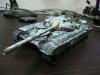雪地涂装t-72: 版件为三角号t-72扫雷型,版件质量组合度都一般,性价比适合于我这类入门已久却技术不高的资深新手,若干年前50元入手,一直烂尾在书橱里,最近从咱们论坛里不断学习进步,有些技痒难耐,于是拿出来重新改造了一番。 组装基本按照图纸进行的,其中对一些脆弱的部位进行加强,比如:坦克的天线,车前灯的灯罩,牵引钢缆,车头的推土铲的部分用铜丝自制。以及部分原版件上失真的部分去掉重做,如:烟雾弹排线,用铝片和纱网自制了发动机散热罩,用AB补土对炮塔和火炮防盾表面进行简单处理,打磨了炮管合模线尽量使火炮口径真圆,去掉了右侧前挡泥板和部分裙板并模拟战损效果,最后打算改装活动悬挂,但因技术不过关最后以失败告终。 坦克的涂装为工业罐喷漆喷涂,后用温莎牛顿油画色和zippo油按1:2比例稀释料进行滤镜处理,由于做滤镜时油漆还未干透,所以原车颜色斑驳的很,雪地涂装用的是温莎油画色,直接用棉棒涂装,以模拟临时用石灰水涂抹和积雪的样子。 总的来说,制作过程就是这样,这种低级的制作改造和涂装还是很难入得大家和高手们的法眼,只不过为和大家分享制作的乐趣和给论坛增添点微不足道的活跃气氛吧!