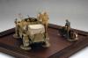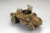 套件是田宫35286,早就入手的东西和威俊比已显落后,单套件给出的兵人还是不错的,这盒222是田99年作品,组合度一如既往的好,只是小零件上不太突出罢了,本车笔者只是换了附加油箱架,别的几乎直做,挡泥板薄板用薄纸片制作,加了灯线(不怎么看得出来)整车制作好后觉得尾部特土于是加了一个小箱子,整体看着好了很多。田宫的给出的水贴说明很讨厌德军十字正好在附加油箱下面,给制作带来小小麻烦。兵人用了一个别的非洲军人形使得在车里的兵人目视方向更自然些。上色用的田水旧化方面山寨滤镜法白色居多,主要表现出退色感觉,最后用粉彩修饰下底盘。本来想做个场景搭配的,这段时间一直很忙实在来不及了,意思一下,各位上眼了。