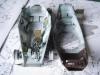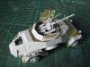 这次选用了HB的新版222,套件完胜老田的222,不但全内构,还带了3大张PE,开模虽然不够锐利,但毕竟很值得一作。 下面是制作过程: 1。素组过程进行还算顺利,主要是号手板件的老问题,合模线N多,打磨的手疼,由于是全内构,我上下车体没有粘合,主要把前车观察窗和发动机盖改成活动,便于展示内构,用手手钻把20mm炮的消炎口全部钻通。其他直做。 2。喷漆:先用君士的金属底漆喷涂PE,待金属底漆干透,内构喷1000号水补土,静置24小时后,用亚光黑全喷内构,在分别遮盖喷涂防锈红和内构白,笔涂发动机和内构部分,待漆干透上水贴,再用黑+红综色法郎漆混合液滋洗全车,漆干透后点掉漆,再用海湾色天然土轻焼,发动机部分上点少许锈红土,边角用银色干扫即可。车体用遮盖带固定后粘合。内部用报纸棉球堵住,全车用德国灰喷涂,再用沙黄喷涂全车再边角等处薄喷做出阴影效果,炮管和机枪单独喷漆。 3旧化:全车上完水贴后先全车薄喷光油,统一车体和水贴色泽,再滋洗全车,滋洗液干透后用棉签沾溶剂顺流水方向插去多余滋洗液。分别用田水泥土色,白色,浅沙黄色薄喷全车做滤镜,模仿沙漠尘埃,用海面法沾德国灰点掉漆,边角再用铅笔轻划,模仿更深层掉漆和划痕。 4收尾:用各种土色涂在轮胎上,再用沾溶剂的毛笔干扫轮胎,做出立体感,最后全车喷罩光统一色调收工。