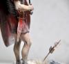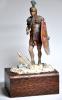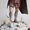 第一次做兵人,选了1:16的,因为太小的话,自己怕做不来,先加法再减法嘛!!乌克兰的MINIART罗马卫士,塑料的!!金属太贵!! 工具,就是丙烯,油画,粉笔,玻璃胶,红酒木塞,细铁丝,沙子(真的)毛笔头。从去年就再做,但是烂尾了,只搞了素组,今年4月后也是断断续续做,差点放弃!!还好有这个比赛让我想尝试下---所以还是坚决完成了。 这模型组合起来缝超大,要填补土打磨n次!!然后开始用玛丽牌的丙烯上色。因为丙烯干的快,所以上色要一气呵成,在模型上调色,就是说第一遍色未干,第二遍色差要赶快混合第一遍色!!尤其是肤色的处理,另外盔甲,原有封绘盔甲很亮,像是中世纪的钢甲!!不像征战了几年的战士,哪有那么好的保养,再加上今年看了“血与沙”,“罗马”的HBO美剧,更坚信盔甲深沉点没什么不好。黑加银处理。至于肤色就随意调制的,土黄,白,褐色,甚至少量红,没有具体比例,随意调制。因为是战争的小场景,所以满身灰尘。上了基本色后,再有油画色扫,粉笔扫,征尘满满吧。本来要做些伤口,血迹,但是觉得看起来过于腥味太重,于是作罢。 地台呢,找了个水曲柳的实木块。用鞋油上色,主要用棕色,当然不够的话可以加黑,隔2,3天后找块小地毯条打磨亮些。 场景是用玻璃胶(酸味大)挤到地台上,压好。用真沙子,红酒木塞压上作出基本地形,等个1-2天白乳胶上一遍,上丙烯基本色!!这时沙子颗粒被白乳胶覆盖了不少,就在局部位置再上少量白乳胶,撒些细沙上去,再上丙烯,丙烯要很稀。箭是用细铁丝502沾办公资料用透明塑料封面裁的羽毛造型,上好色后直接插在地上。因为地市玻璃胶做的,较柔然,几天后都可以一插就进!!哈哈哈~~~草是最后加的,因为朋友说场景缺点什么,于是把刷白乳胶用的毛笔头减了些做了草!!(不心疼,很便宜的笔)!! 缺点,还很多,细节还不够,色彩处理还不完美。那个盾牌的水贴进水就烂开了,只好手绘上花纹,再用签字笔沟黑钱!!所以粗了点