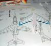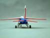 环球81年的版件+胶板+补土+郡士油漆 我们公司和法国领事馆是邻居,法兰西巡逻兵飞行员就住在附近的酒店,中午我们还和他们在一起吃饭所以弄到了预演和正式表演的门票。又从法兰西巡逻兵的随队摄影师处弄到了大量的法兰西巡逻兵的照片。 对比版件线图和照片发现版件的机翼部分与实机区别较大。版件为宽凹线缺失许多细节线条,主翼尾翼翼型完全不一样且没有提供发动机喷口这些只有自己修改追加,将线图缩到1:72复印多份再分别裁下机翼纸样贴在版件上供修改和刻线参考用用纸遮盖出机翼下的字样再喷蓝色由于水贴的年份久远除队徽和部分文字外全机采用遮盖喷绘。