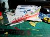 细节:1、全机刻钉 2、起落架加线 3、加放电刷 4、改导弹为拉烟弹 5、按民用方法加光油,打磨膏抛光漆面 6、鸭翼自改做活
