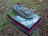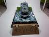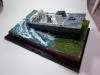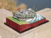 选取威骏35015德国水陆两栖车中期型为题材。制作了一个由岸边到水中的动态场景。 制作过程中,首先对车身进行了内构涂装,外部实线迷彩涂装,渍洗,掉漆,流锈等旧化手法。 然后制作地台,制作难点在于波浪的动态形态及颜色变化。此作品制作后,使我对水及波浪的制作有了一定的经验