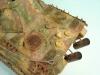上色:全部采用田宫水性漆 沙漠黄是XF60(45%)+XF57(30%)+XF2(20%)+XF64(5%) 橄榄绿是XF67(50%)+纯黄(5%)+XF2(15%)+绿色(20%)+北约黑(10%) 红棕是XF64(60%)+上面调好的沙漠黄(30%)+XF2(10%) 用深灰色上胶轮缘,用防锈油色来上钢轮. 旧化: 先全车来一次滤镜,这次是以扁黄为主,所以黄色的油画颜料上多点。 然后是粉彩轻洗出部分积尘,干扫。用浅黄,浅绿点画掉漆,然后用黑棕色有选择的点涂在刚才的部位上,其他某些部位也点一下。并画好工具的木柄。 然后用油画颜料洗出部分的流锈和水痕。给新画好的工具木柄也洗一下。 排气口的消焰器先涂上X10枪铁色,然后涂上开得比较稀的棕色,扫上各色粉彩。然后用溶剂化开、洗涂,让油漆和粉彩充分混合,得到真实的腐蚀效果。 我看见有些同好吧尾喷口全部涂成棕色那是错误的,因为到那种程度的车不是报废了就是被击毁很久了。 给路轮和履带上粉彩。每个轮所用的颜色都不近相同,这样可以得到丰富的色彩变化。 用铅笔在车上的掉漆处,履带,工具的金属部分,钢缆画上点金属质感就大功告成了。