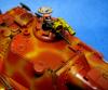 因为电脑故障20号19:00才传完好险!废话不说了。1945年4月,苏军向柏林发起总攻。为了挡住苏军的铁骑,德军将在实验中的豹2战车推向战场。全车采用二战末期在红褐防锈底层上喷暗黄色条纹的涂装。豹2做为德国的末日战车其完美的防弹外型加上88炮的威力使它象战车中的太阳一样的耀眼,可惜生不逢时只能成为天边的斜阳在人们的记忆中留下一种凄美。全车用威龙套件,沃雅蚀刻片。用树脂钉在炮盾和炮塔后舱门上追加铆钉。用AB补土在炮塔和前车体上追加焊线。用蚀刻片做出发动机上的编号.