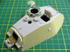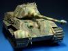 使用的套材: 这次制作主体是龙的6189保时节炮塔之虎王。其中车体两侧的钢缆,侧面的群板以及炮塔后门上的手枪射击口栓塞均为Voyager Model的模型改造补品。整个模型还用到了其他蚀刻片厂家的部分剩余零件,同时使用了Metal Hobby的金属履带。 改造要点:在模型组合阶段进行的改造如下: 1)可活动的悬挂结构 2)全车细节均进行蚀刻片改造 3)坦克外部所有可活动的门,都改造为活动结构。(包括炮塔顶部的抛弹口/信号弹发射口) 4)全车铺设水泥装甲,为了打破单调,做了适当的脱落。炮塔首上水泥装甲的防磁纹理参考了一辆实车照片。 5)所有明显的地方都追加了焊接痕和气割痕。 6)前后挡泥板都做为全可动结构。 7)炮塔后门是全车改造的重点,完全按真实的结构复原,同时改正了和后门连接的装甲的厚度。(注意!通过结构图可以看出,此装甲是“镶嵌”在炮塔后装甲上的,即此装甲板裸露在外面的厚度仅仅约40mm,而实际厚度为80mm,只有在后门的开口处断面才可以观察到。 8)扩大了车长观测塔上的潜望镜窗口,原件太小了。 9)打薄了排气管口,同时对保护其的装甲缸“缺口”形状进行修正。 8)追加车头2侧的终极减速器的保护装甲的焊接痕迹。 改造点未能尽述,请参考“裸照”。 全车PE使用乐泰胶水粘合,部分零件考虑了强度问题,结合使用了焊接技术。如:车体前后挡泥板为全焊接结构,铁锹头的固定具,千斤顶的固定具等。虽然焊接颇费时间,但是完成后的效果和强度都是很让人惊叹的!炮塔后门为全车改造的重点,施工参考了一张后门的结构图纸,由北京杨林提供,在这里再次对他表示诚挚的感谢! 涂装设定:制作的历史背静设定为1944年投入在法国战斗的503重坦克营的保时节炮塔虎王。涂装设定为3连比较有代表性的“虎纹迷彩”。当年的T社和福万都用这个迷彩做了封绘,可见其魅力。当然此迷彩的难度也比较大。所有颜色均使用GUNZE的油性涂料,用500号水补土打底。按照真实的涂色顺序,先喷涂暗黄,然后做暗绿和红棕的迷彩条纹.防磁脱落的地方采用了浅灰色打底,原因是参考了大量历史图片和一些艺术效果图.由于赶在比赛结束以前提交作品,所以后续的旧化细节和拍摄方面还略显草率,整个后续的涂色和旧化用了7天的休闲时间,实在是很赶.在车体的考证方面其实参考的是324号实车,但是苦于龙没有给这个水贴,同时我也按照自己的理解在迷彩纹路方面加进了自己的设计,也许这就是模型的魅力!最后索性放弃了车号.