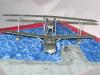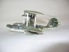 这是本人第一次参加比赛.以前是做爬虫的.医学生的大四是很紧的虽说比赛时间有两个月但是对我来说只有五一的三天.环球的JJ想必大家也都知道什么样子.网上关于该机的资料全无.真是无比郁闷.全机改凹线,由于舱内一点细节也没有所以自己加了地板仪表所有座椅重新制作.发动机加了管线.由于其发动机的特殊布置加上套件的组合不佳导致所有支撑杆全不能用因为根本对不上.用200电话卡,铜丝,X光胶片等一一作出.由于透明件碎列部分窗户用饮料瓶追加.机身上的窗户也钻开贴上透明的塑料片(因为用502加固机身导致起雾惨啊!).起落架也基本为自制.由于其特殊的外型也使得涂状难度大大增加(其中有打算放弃比赛的念头).水贴纸由于年代久远也全部碎裂!!用尼龙丝袜拉的线以前没做过所以经验不足效果不好!.此次模型制作挑战还在于首次制作水面.玻璃胶的气味太大差点晕过去.作出的效果十分不理想.因为做爬虫多了.最后竟然把飞机干扫了一下.不知道怎么想的.各位同好们若有什么建议不要客气.拍砖就是.