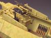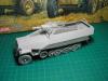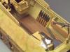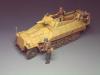 龙的251三合一,做的是251/9搭在短75炮型的。龙的模子开模比较琐碎,但最后完成效果还是不错的。最近看了很多日本模型高手的作品,作品大多属于所谓的“唯美派”风格,远看十分干净整齐划一,今看却是在细节上做足了功夫。小弟很是喜欢这种风格,也就着这次机会试着模仿了一般。也试着挑战了一下黄底上绿褐细条纹涂装,条纹不仅要细,还要表现的若隐若现。小弟没有0.2喷笔,用0.3的小心翼翼的喷了4个多小时...最后效果还算满意^v^...由于251/9内部少了两排座椅后显得十分空档,小弟加了一些随车用具,加了个发动机,并制作了3个兵人使作品更丰满些。兵人,黄色的为田宫251里的,动作协调,细节欠佳,换了树脂人头后有较大空袭,用补土添上并刻出纹路模仿毛衣,并追加了勋章和臂章。灰色的为龙的一代兵,细节很好,但动作僵硬,如直做人脸就朝下看地了...换了树脂头不说还要在躯干上进行一番修整,随身配具换成龙2代兵里的。 很多日本模型高手的作品里,在钢板的表现力上做作了文章。不光光用虑镜手法来表现层次感,更多的是用000号小笔在面板上点划。小弟在此也试了一把,虽然很累,但效果却是不错。(车体侧面细节那张)