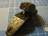 很早就确定做这个主题了,把1/100的救世主做成MG规格的,植入骨架,一直断断续续地在做,但是前阵子其他事情耽搁了,幸好比赛延迟了. 说几句制作过程吧: 头部:头部没做什么改动,就按老样子做,天线没有削尖,个人不大喜欢太细的. 身体:身体部分是黑强袭改的,改造成救世主的样子和风格. 腰部:腰部用的是自由的零件,同样加以改造,各裙板都填平背面,前裙板加以切削变成救世主的风格,侧裙板配合整个身体的变大而加长,后裙板同样加长,并加了两个扁平的喷口. 手部:肩甲部分非常头痛,因为要变形,所以要往下拉,但是MG的部件不象HG的,肩甲和手臂是分开的,所以想了很久,最后把肩甲内部填平,并开了条槽,使连接身体的部件可以滑动,实现肩甲的滑动.光剑用自由的零件换掉,并在肩甲中做了一个连接点,这样装的时候不会蹭掉漆.肩甲上方可以在变形的时候连接枪的,只是在拍照的时候忘了装枪.手臂用了以前的废弃骨架,已经想不起是哪里来的了,总之加以修改,并加上救世主的手臂装甲,两块手臂装甲之间特意加大空隙,以形成一种变形机的味道. 腿部:用自由的腿部骨架植入救世主的装甲,还蛮合适的.脚部加以修改,增大可动范围.脚背上的进气口镂掉,用其他零件换掉,脚底喷口也用其他零件装上. 武器:盾牌和手臂的连接点加以修改,以适用于新的手臂,在变形的时候也可以装在胸口.枪没做改动.背后的武器连接点改动较多,也比较麻烦,用胶板和AB补土加以修改,装了几个喷口,实现了机头在变形时的移动.两门炮的炮口都加入了铜管,炮身上各加了两个大铆钉. 这样做完,使得救世主有MG的可动性,形象也比以前的威猛,而且同样也可以变形. 基本就是这样了,接着就是上色,渗线,干扫和水帖,和以前一样,没什么特别的.不过由于时间匆忙,水帖没贴很多,照片也拍得不多,角度也没什么变化,有点遗憾,下次再拍吧,这次比赛先赶上再说,不过总算是赶上了,哈哈.