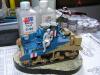 最后说一下这个人物 可能是赶得太急的原因 (昨天画好的肤色)已经喷了3次消光 但人物还是有点亮(失败呀)偶设定的是这位年轻坦克手在休息时拿出了远在故乡的女友寄来的信 回忆起过去的美好生活 不由得会心一笑 以次反衬战争的残酷 所以地台上的《HONEY》也可唯是一语双关 偶更是希望通过这个人物